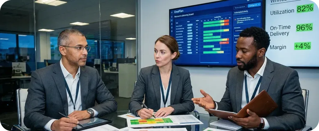 As a certified OnePlan partner, we leverage the platform to design and optimize a centralized portfolio ecosystem that connects strategy, portfolios, investments, capacity and delivery, supported by integrations that ensure workflow alignment and reporting reliability.