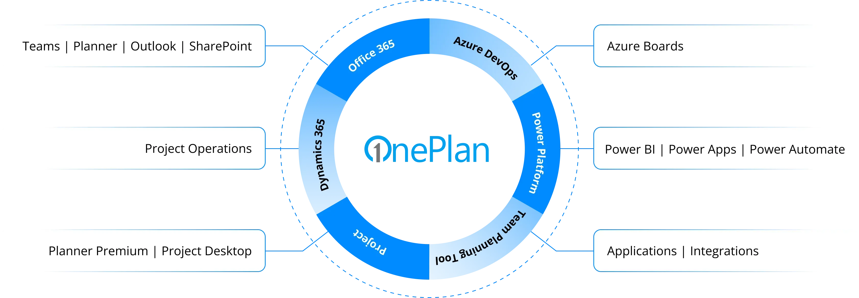 OnePlan works seamlessly alongside Teams, Project, Planner, and Power BI – plus adjacent Microsoft 365 apps.