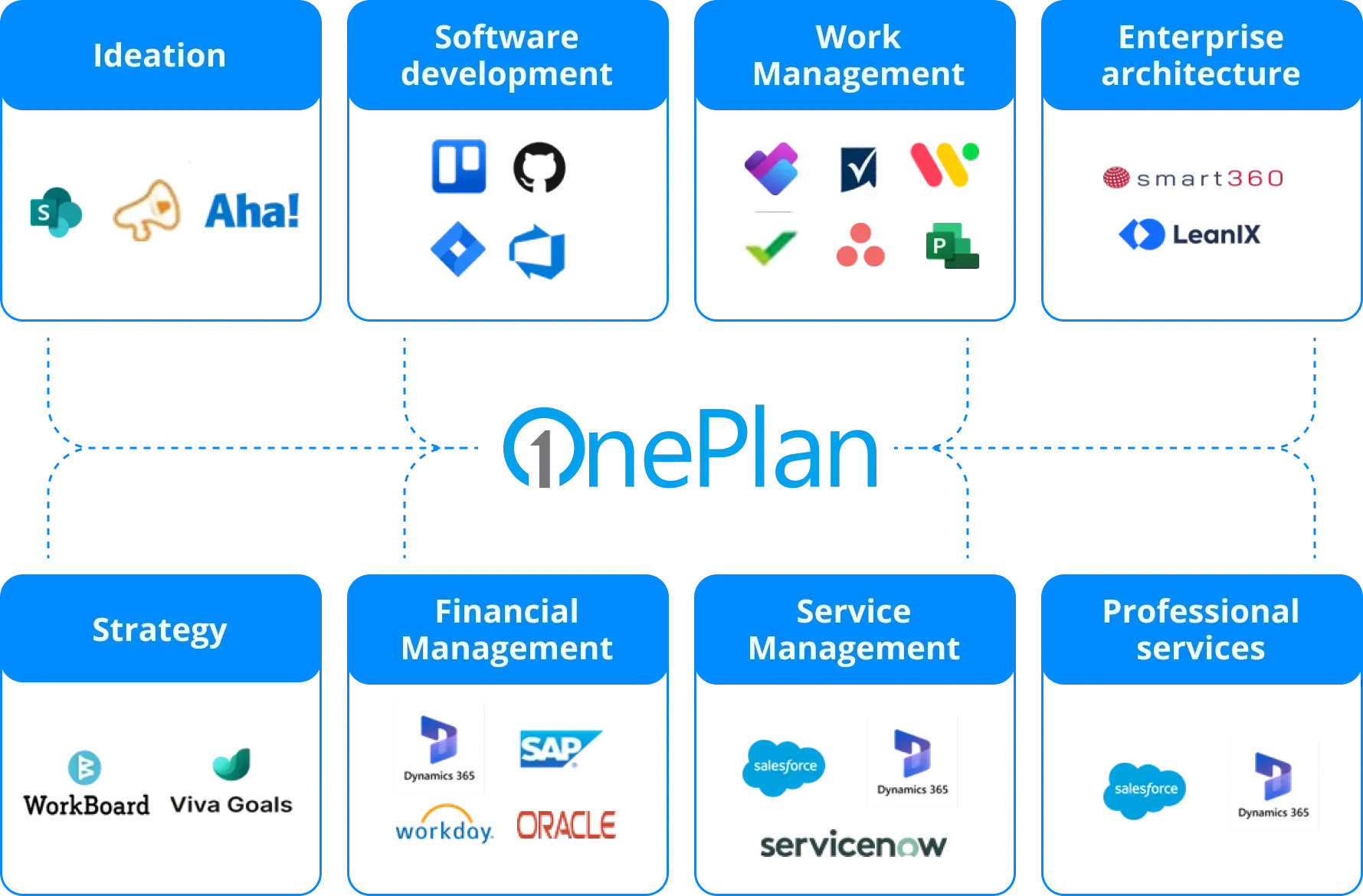 We help integrate any vast tool stack or systems - including software delivery, work management, financial management, service management, enterprise architecture and more – into a centralized portfolio environment with the OnePlan PPM tool.